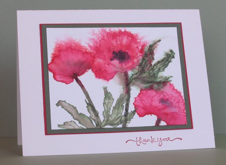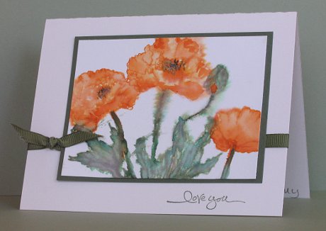 As I have been having fun doing some watercolor painting lately,  I was keen to try some of the techniques with stamps.  I love watercolor paintings  of poppies so the beautiful Flourishes poppy stamps were the perfect place to start.