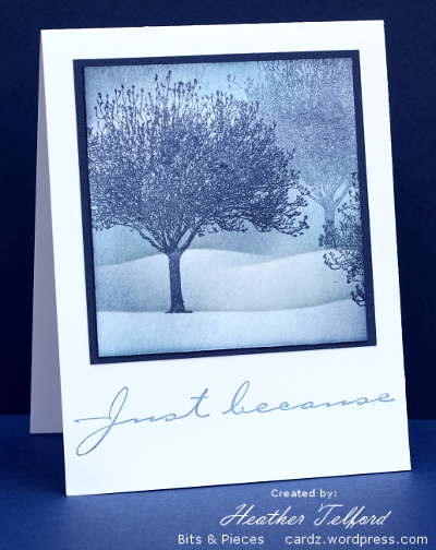 Another lovely card Heather. I like the landscape and tree’s, almost as if they are in a misty wood, very mystical. Love Sheila