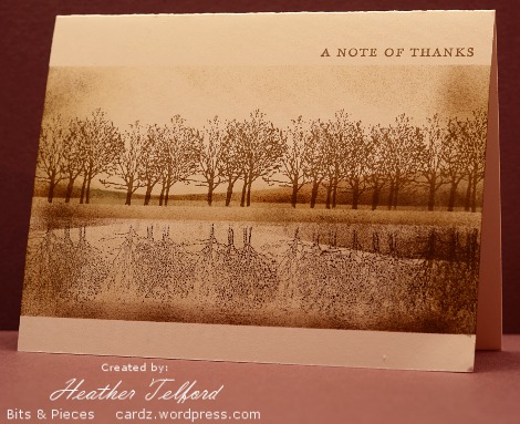 Stamps: Little stamp of four trees I acquired somewhere,  Thank you Kindly (SU)