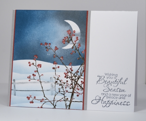 Very pretty card! The sky, snow, the berry vines in the forefront … so pretty! 🙂