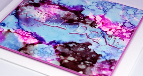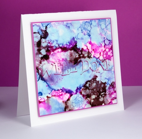 This alcohol ink technique is gorgeous snd I love the colours Heather. The sentiment cut from the same piece and set back in the die cut space works really well too. x