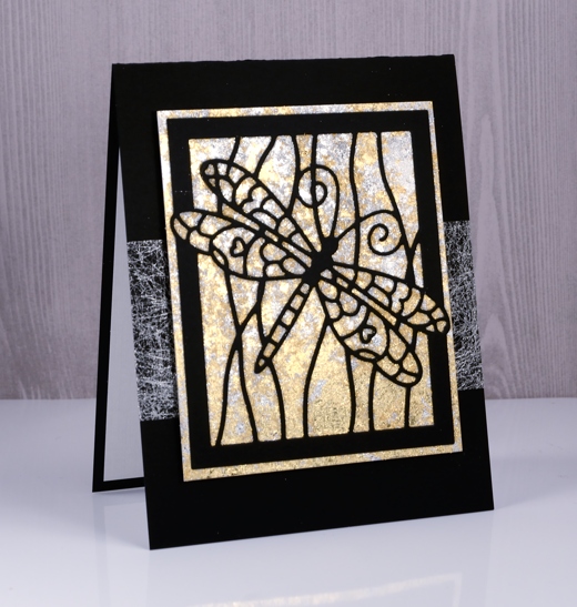 The gilding flakes make such an elegant background, Heather! Perfect with the black dragonfly frame!