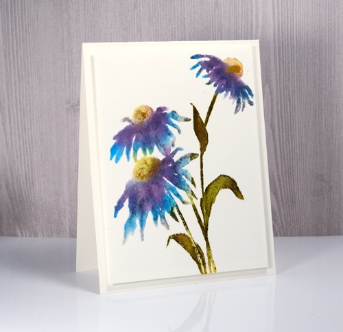 Both panels were stamped on hot pressed watercolour paper with the help of the MISTI so I could add the colours one at a time.