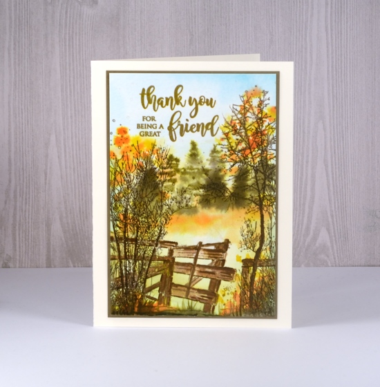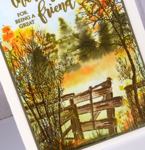 If I had seen that stamp, I would never have guessed it is the one you used for this card. You created a lovely Autumn scene by making the changes and adding in the wonderful background.