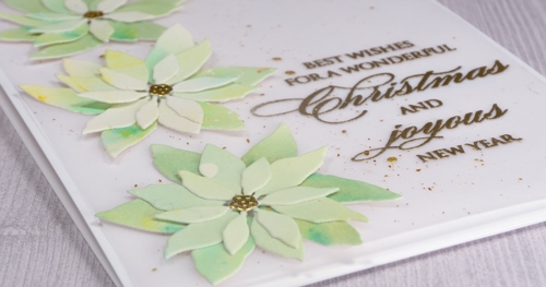 I love the look of the lime and olive green brushos on these poinsettias Heather, and the vellum layer does soften the background, especially with that bit of spattering too which coordinates beautifully with the wonderful sentiment. x