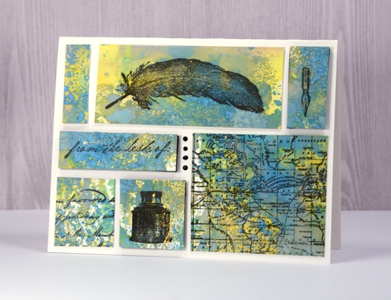 Posted: November 30, 2017 Filed under: Correspondence, World Map | Tags: Darkroom Door stamps, distress oxide inks, Finetec artist mica watercolour paint 7 CommentsFor today’s card I pulled out the Darkroom Door vintage style “Correspondence set” and the “World Map” stamp. This mosaic style card was made for the wedding anniversary of friends of mine. I chose the correspondence and map stamps because they are a couple who love books, travel and literary memorabilia.