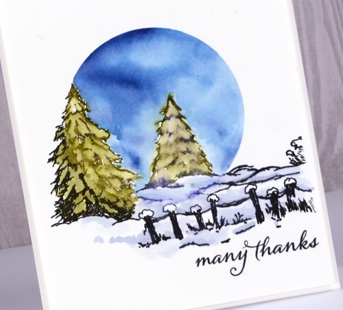 Another gorgeous winter scene Heather and the circle with the trees within and then overlapping and the snowy foreground works really well. I love the watercolouring too. x