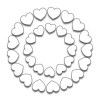 That was the easy part; after that the fiddliness factor rose considerably. I attached adhesive sheet to the back of the panel and die cut ‘hearts in circle’ from the centre of the panel and from a red adhesive backed foam sheet. I carefully saved the little hearts in formation on a piece of ‘press n seal’. I peeled the backing off the watercolour panel and attached it to the card front.  Next I pressed the die cut adhesive backed foam hearts into each space in the die cut panel. Finally I peeled the backing off the die cut watercolour hearts and attached them on top of foam hearts. This was a little like completing a jigsaw puzzle.