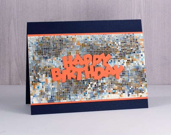 I am sharing this card over on The Foiled Fox blog today. It’s a simple one but I think, a clever one. And by clever I’m not talking about my artistic skills; I’m talking about the wonder of black brusho. If you have some brusho paint and you’ve been avoiding the black container then you are missing out! You can see in the close up below black is made up of a bunch of different colours and this cheesecloth stamp from My Favorite Things keeps those colours divided like tiles.