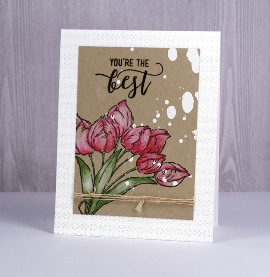 These tulips are beautiful Heather and the pencils have given a soft and pretty finish, and the Minc spray is something I haven’t heard of but a great idea as the white foil is very effective, and love that background embossing too. x