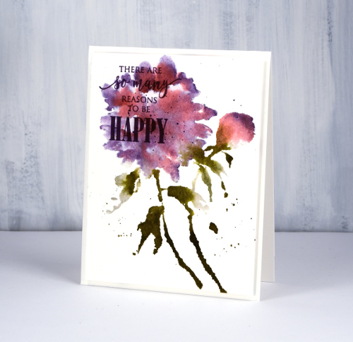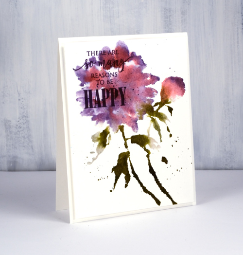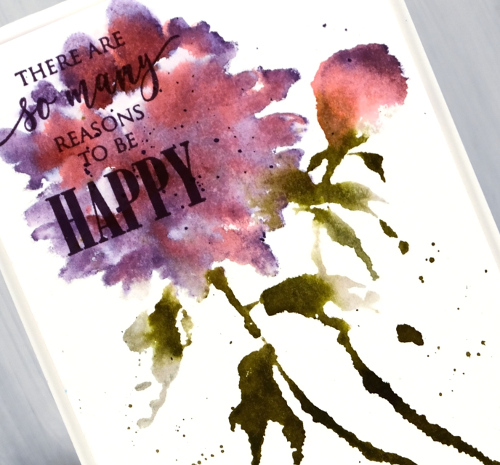 3. Gorgeous and artsy flower card, Heather! I love how the distress stains blended. The color combinations are so beautiful and the splatters are perfect. Hideko