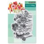 In the case of this card you might happen to have some black and white chevron cardstock to add to the card front. I did not, so I made my own with the Penny Black zigs & zags stencil. My chevron does have the bonus features of texture and shine. I taped my stencil on watercolour paper ( the same type I used for the floral panel) and spread transfer gel over it. I let that dry then lay black foil over it and ran it through the minc. I also ran some adhesive tape over a strip of cardstock and added black foil to that too so I would have a bold strip to position between the chevron and flower panels.