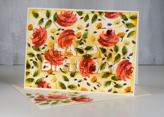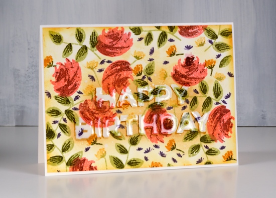 Posted: August 17, 2018 Filed under: happy birthday to you, painted prints | Tags: My Favorite Things, Ranger Distress inks, WOW embossing powders 5 CommentsI’ve been playing around with the layering stamps from MFT ‘painted prints’ again. I had a bit of an idea in my head when I started but I changed it a couple of times along the way. It’s on hot pressed watercolour paper because at first I intended to add water. I began by stamping the roses in worn lipstick and added the second layer with stamped off aged mahogany.