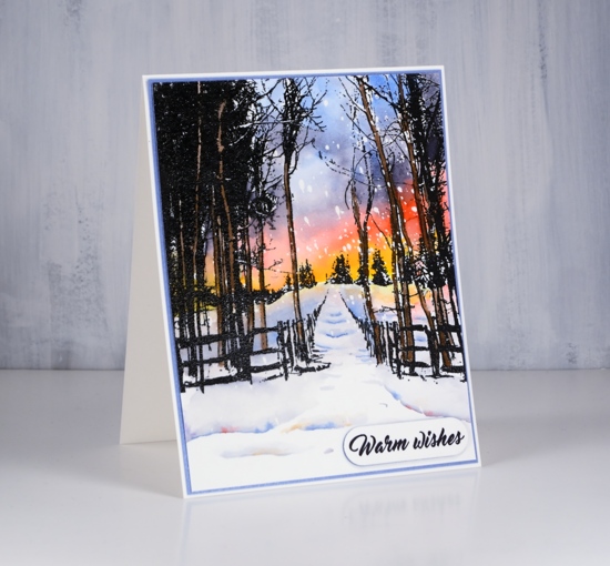 Absolutely gorgeous! I love your blended watercolours; the sky looks amazing. Also how the snow looks like it’s in drifts along the path.