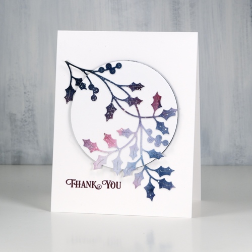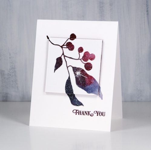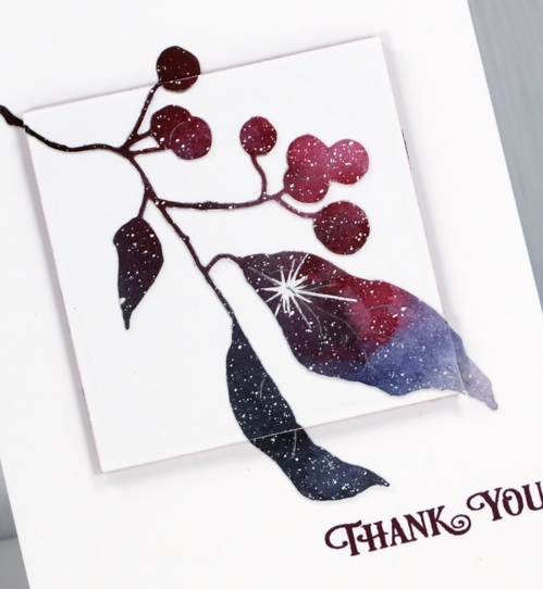 This last branch die is called ‘winter berry branch’ also from Penny Black. The sentiment is from the ‘banner sentiments’ set and is stamped in chianti versafine clair ink.