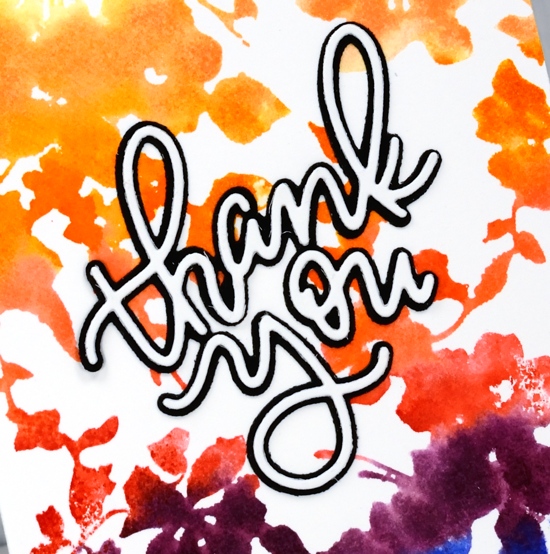 Another technique I haven’t used before is the layered shadow die sentiment. I haven’t had any shadow dies but the Foiled Fox sent me this one and I did a black on white and a white on black to make the sentiments stand out on both colourful backgrounds. I added double sided adhesive sheets to both black and white cardstocks before die cutting to make it easier to attach the sentiments to the cards.