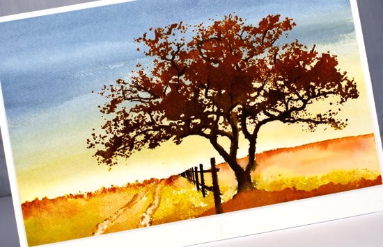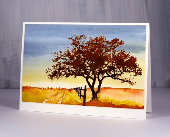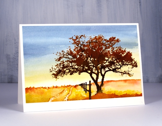 I have some more scenic stamping to share and without meaning to I have used an autumn colour scheme. Fall is going to come too soon as it is I didn’t mean to hurry it along!
