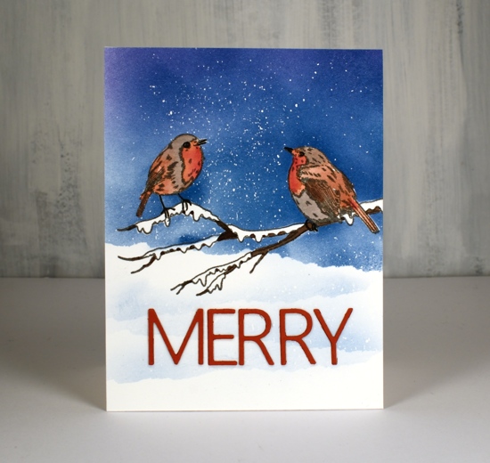 I am thrilled to be over  on the Foiled Fox blog again, sharing these sweet little birds. They are from a new Penny Black set, ‘Misty Melody’ and I’ve paired them with one word from  the PB ‘…bright’ die for a wintry scene. By the way there happens to be a 15% discount sale happening until the end of Dec 2 so now is a good time to visit.