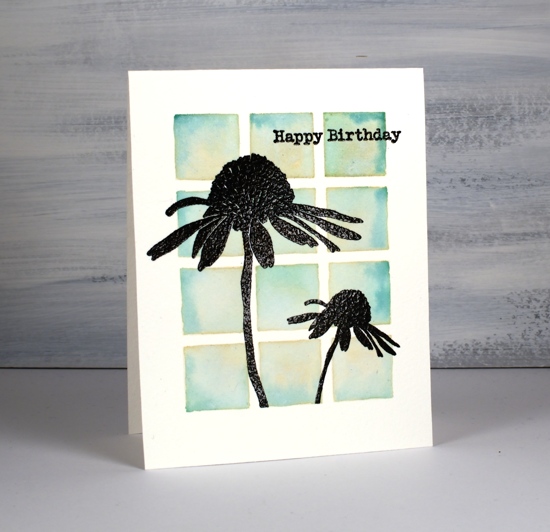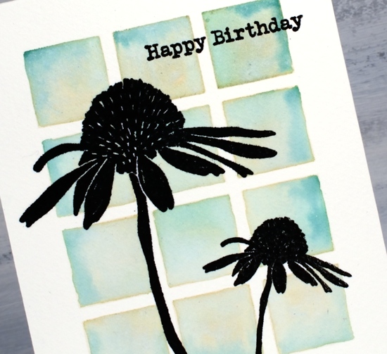 6. […] I blended through a stencil to create square grid backgrounds for some floral silhouette stamping. Today’s card uses a similar technique but I wanted the squares to be less neat, a little […]