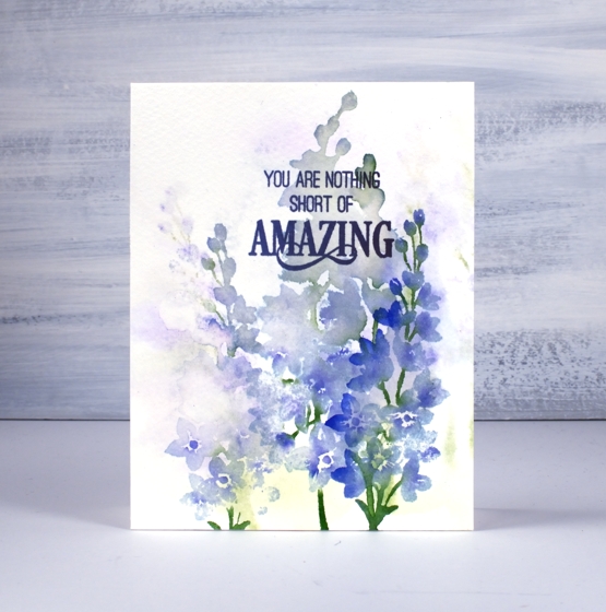 I chose an area of stamping with very little definition as the spot for my sentiment stamped in versafine imperial purple.