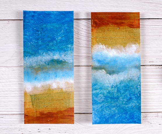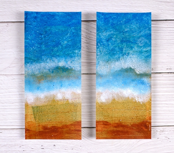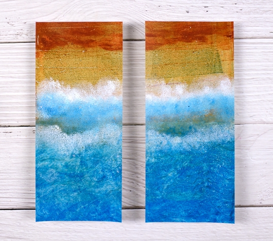 These are fantastic. You even created the surf. I can’t wait to see how you finish them up. Thanks for describing the process. I like the beach on the bottom maybe just from habit. Either way I’m sure you will use them in a creative way. I’ll look forward to your You Tube appearance too.
