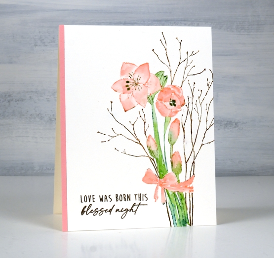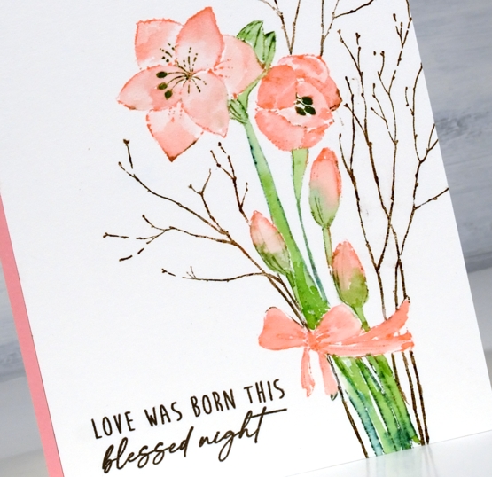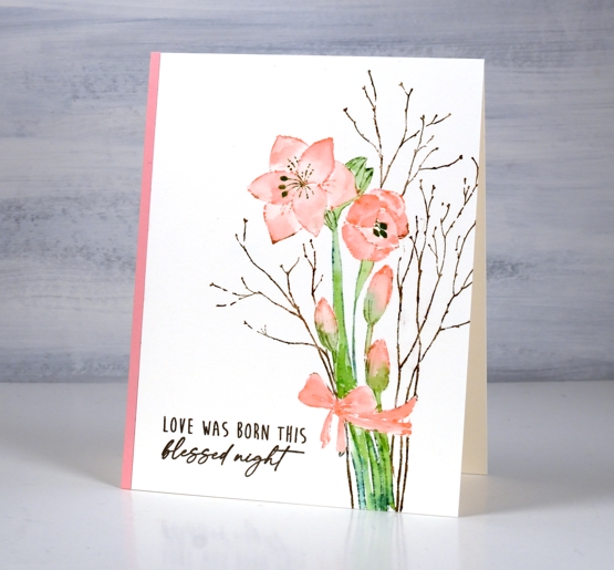 This sweet amaryllis bundle is another new stamp from Penny Black. I kept things simple using the same technique used on the pinecone poetry card.