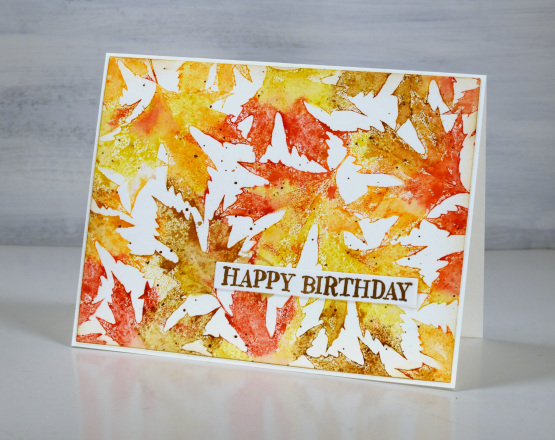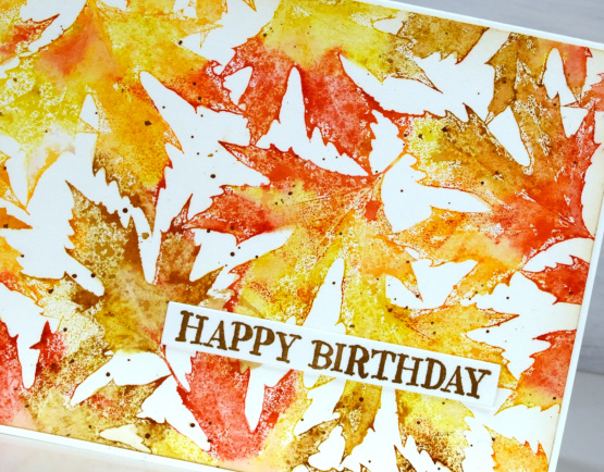 The gorgeous maple leaf stamped over the whole piece in these great autumn colours makes a wonderful background, and with minimal painting to give a super effect Heather..a perfect birthday card for this time of year. x