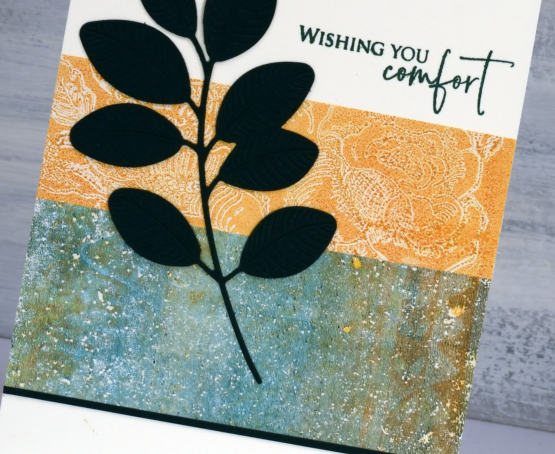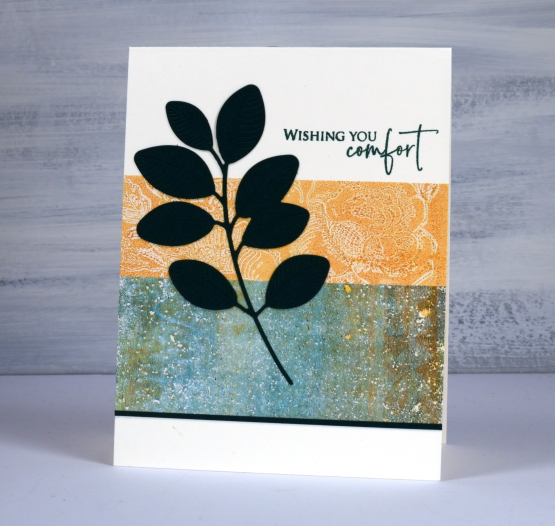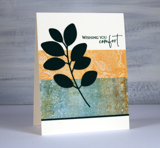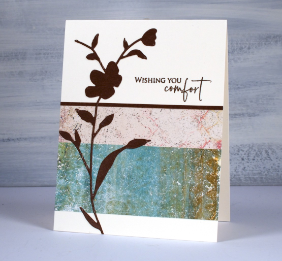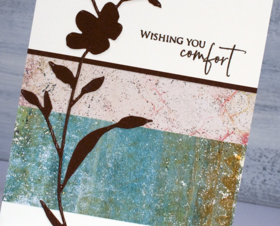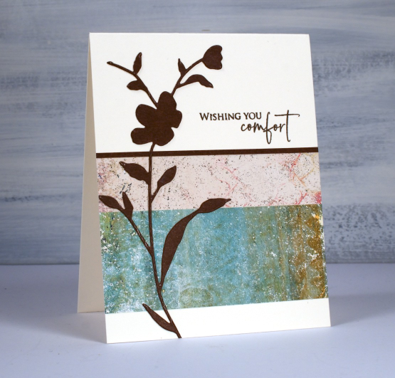I thought the muted tones of the gel prints lent themselves to a sympathy card as did the dark brown cardstock rather than bold black.