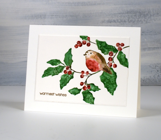 This is a beautiful PB image and I think both look terrific Heather, but I think my preference is the second with the stronger colour..I just love cards with robins on, it always the first thing I think of for Christmas. x