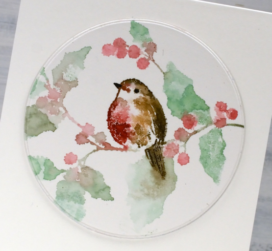 What a splendid bonus to have a second stamped image. I love both the PB robins and I prefer the paler card. Lovely.