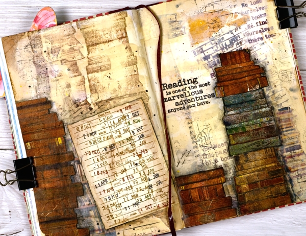 Posted: April 22, 2022 Filed under: Art Journal, bookshelf, bookworm, Darkroom Door, library books, Mixed Media | Tags: Art Journal, Darkroom Door stamps, Mixed Media, Ranger archival inks 9 Comments