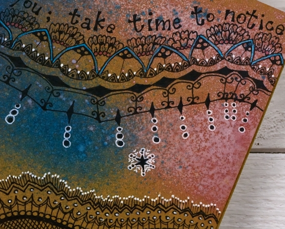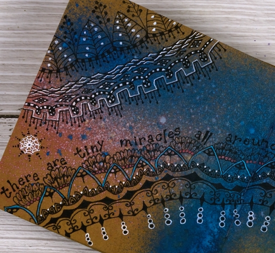 As I worked I wanted to make everything brighter to compensate for the brown background but that is an experiment for another page. If I had started my doodling in white the overall effect would be brighter but I like the opacity of the black.