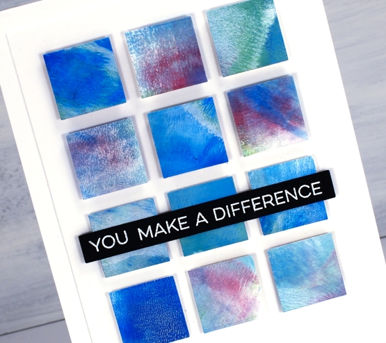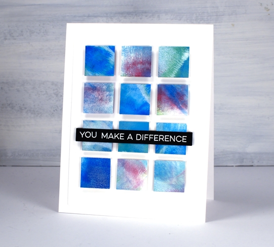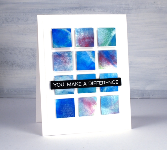 I cut all my squares using one of the dies from the Waffle Flower color combos die set then popped them up on craft foam and added a sentiment from MFT. Hopefully you will see some actual gel printing in the days to come but until then don’t discount the usefulness of a pretty piece of scrap paper!