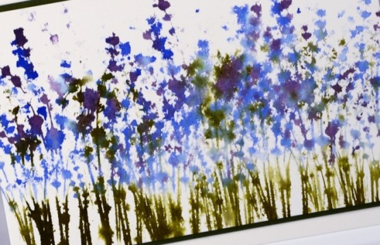 The technique for this one was almost the same but I used rough watercolour paper and more water so the blooms are more like blobs in some places. It’s more of an abstract look.