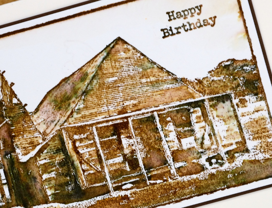 But enough about the postal service. This rustic homestead card is made with a stamp from Darkroom Door. When I was in Australia late last year I visited Rachel Greig and Stewart Yule, founders and owners of Darkroom Door and was treated to a behind the scenes tour of the stamp making process. I spent a wonderful morning talking with Rachel about a range of creative topics including my introduction of classes using Darkroom Door stamps to my teaching schedule. I am so grateful for Rachel’s support of my classes, as are my students!