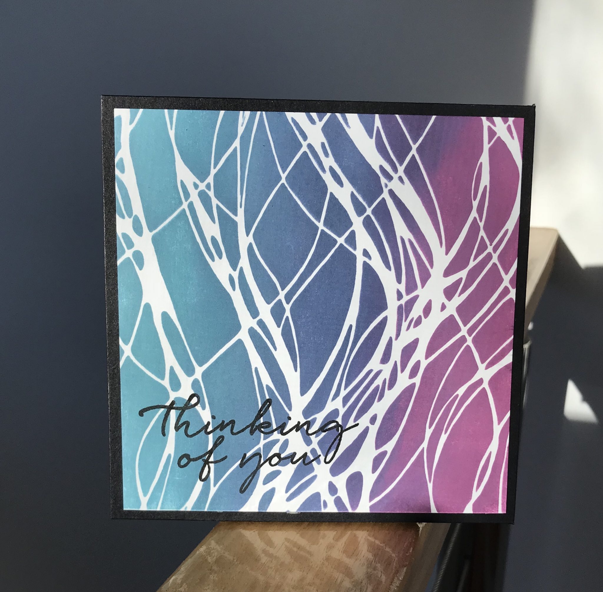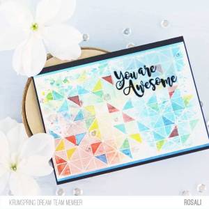 Rosali, whose geometric quilt style card was the perfect choice for the emboss resist technique. I love the way the colour is trapped in sections and draws the eye toward the sentiment.