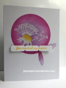 Back to the feather, I used the solid feather stamp from the C&9 Feathered set and Catherine Pooler inks to create the watercolour ombre look. The coverage and blending is just what I was after. Like some dye inks the colours continue to soak in and smooth out after stamping with the CP inks which is exactly what I needed for this look. I inked the whole stamp in ‘shea butter’ ink, stamped then inked two thirds in ‘bellini’ ink, spritzed and stamped, then finished by inking the tip in ‘rockin red’ ink, spritzed and stamped. The little spritz over the ink spread the ink on the stamp so there were no hard lines where one ink stopped or started.