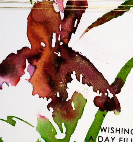 Posted: March 23, 2016 Filed under: Color Burst, Pure Iris | Tags: color burst, Fabriano Watercolour Paper, Penny Black stamps 19 CommentsI am having all sorts of fun with brushstroke stamps at present while teaching my March class. Not only have I been experimenting with all my floral brushstroke stamps and a range of mediums, I have been inspired by the creativity of the class members also.