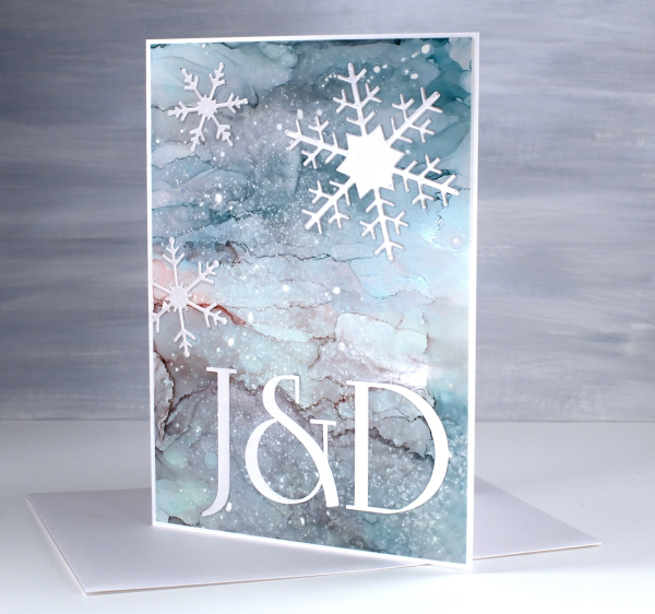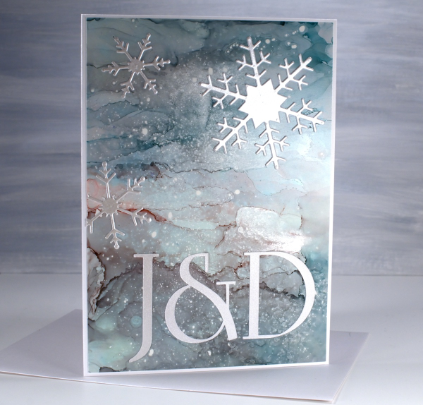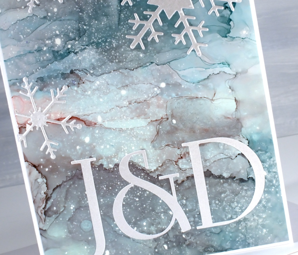 The gilded panel below was very pretty alone so I didn’t want to add much to it. The alcohol ink panel was also pretty but worked well with die-cut silver snowflakes.