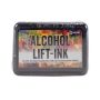 After at least ten minutes of drying time I returned to my alcohol ink panel and started dabbing the lift ink off with a paper towel. Each dab picks up some colour so I kept rearranging my paper towel so I would not be dabbing colour back onto my panel. When there was no more evidence of ‘shiny’ lift ink on the panel I gently buffed the panel with a clean area of paper towel. If all the ink is dry at this point the stamped image will get clearer as you polish. If there is any wet alcohol ink or lift ink the image will blur or spread. This is why it is worth giving the panel plenty of drying time and dabbing time.