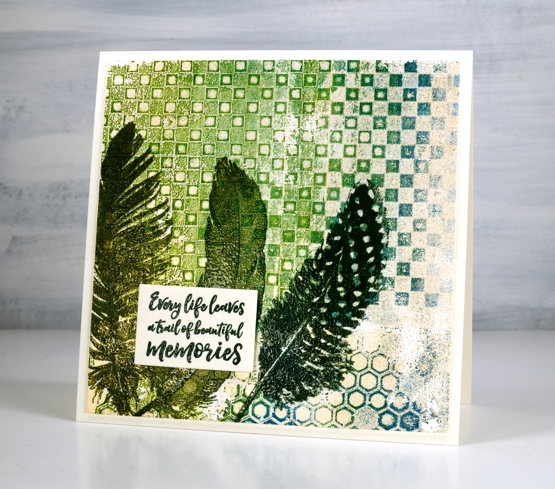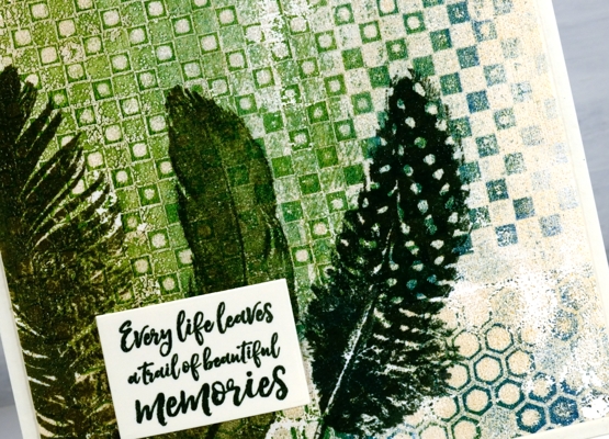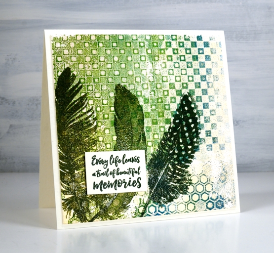 Posted: August 10, 2021 Filed under: checkered, Darkroom Door, Feathers, gel press, honeycomb, Nature Walk, Stencils | Tags: Darkroom Door stamps, Darkroom Door stencils, gel press, gel printing, Tsukineko Versafine inks 3 Comments