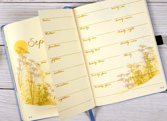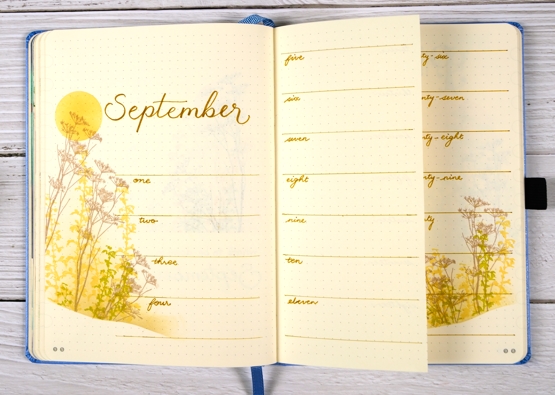 Life now includes a few more commitments so I decided to spread the month of September over a few pages with the middle one cut down narrower.