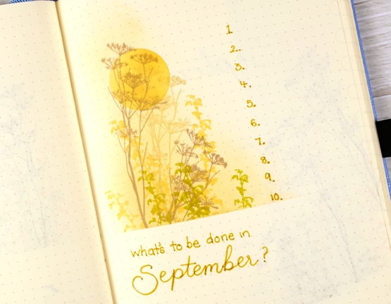 This was not the original plan I had for the September theme; I’d thought instead of doing apples. I sketched a few apples in preparation then realised I would want to have them on all my pages and that would take me half of September. I would then want to colour them in and that would take the other half of the month. I was already late on getting this done so….