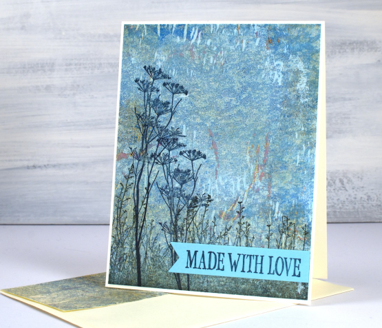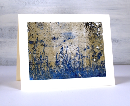 I chose to make cards from these prints not just because I wanted distressed backgrounds but also because it shows how even the scrappy, incomplete, messy prints can be worth saving.