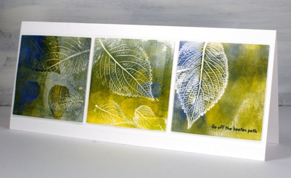 I used two different methods in the video, the leaf printed in yellow at the top of the page uses a two step method. The blue + green leaf above uses three steps and has one technique layered over the other technique.