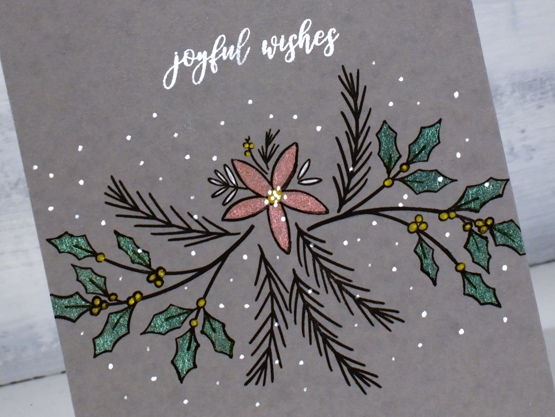 I’ve combined a new PB stamp, ‘wreath & wings’ with a new PB die, ‘mirthful’ for simple elegant style Christmas card.