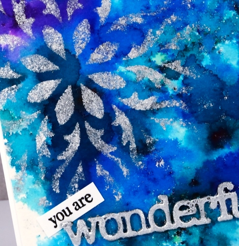 I used the same technique mentioned in my previous post to create a gilded sentiment and tucked a little stamped ‘you are’ in behind the silvery die cut ‘wonderful’.