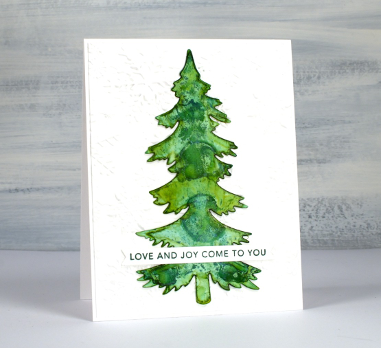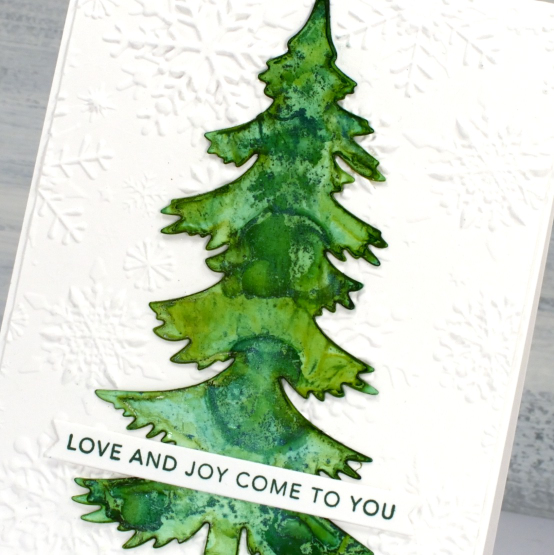I attached the tree to an embossed background and added a Taylored Expressions sentiment. There are a few more alcohol ink Christmas cards still coming. I am happy to have inspired a few of you to look at your stash of panels to see what you might be able to turn into backgrounds and skies.