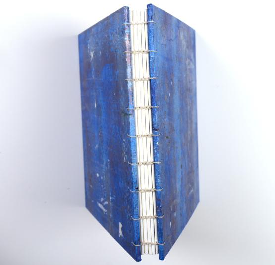 The name of the book comes from the binding which you can see in the second photo. I used kraft paper for my pages, table napkins and dictionary pages to decorate my covers, heavy card from watercolour paper pads for my covers and bookbinding thread.