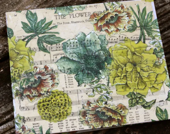 I make my covers from the thick cardstock backs of watercolour paper pads. You can buy bookboard, but my stash of thick cardstock pieces is large and easily sturdy enough. I printed the cover patterns on rice paper which folds beautifully over the thick cardboard.